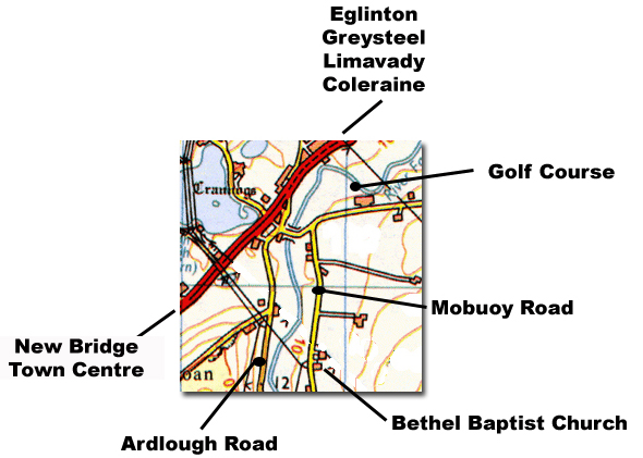 Then turn left on the Carmoney Road to go over the little hump back bridge.